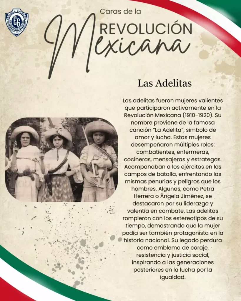 Durante la Revolución Mexicana (1910–1920), las mujeres desempeñaron un papel fundamental, aunque por mucho tiempo su participación fue invisibilizada. Conocidas como soldaderas o adelitas, acompañaron a los ejércitos en los campos de batalla, no solo como cocineras, enfermeras o cuidadoras, sino también como combatientes, espías y estrategas. Su valentía y compromiso fueron esenciales para sostener la lucha armada y garantizar la supervivencia de los contingentes revolucionarios.